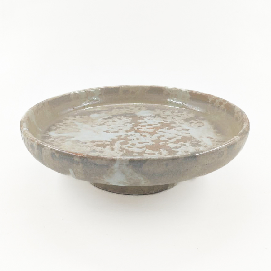 Plato Pedestal 27x9cm-Blanco Satin y Verde Olivo